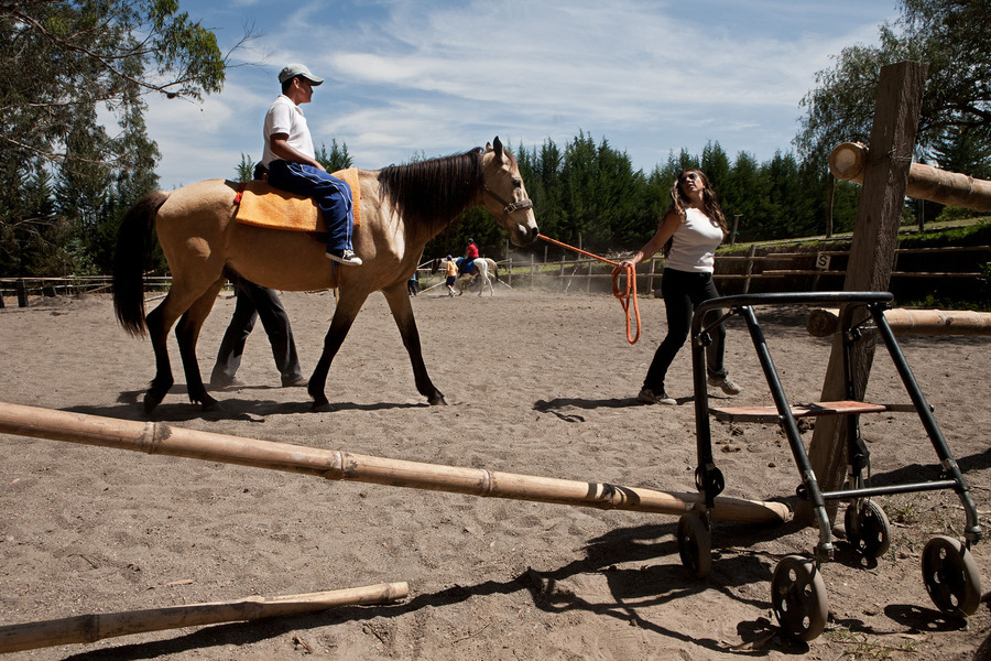 Lorena Cruz, a horse instructor works with Xavier who suffers from Cerebral Palsy with his therapy. She uses her horses as part of therapy to the help mentally and physically disabled kids in Quito, Ecuador.